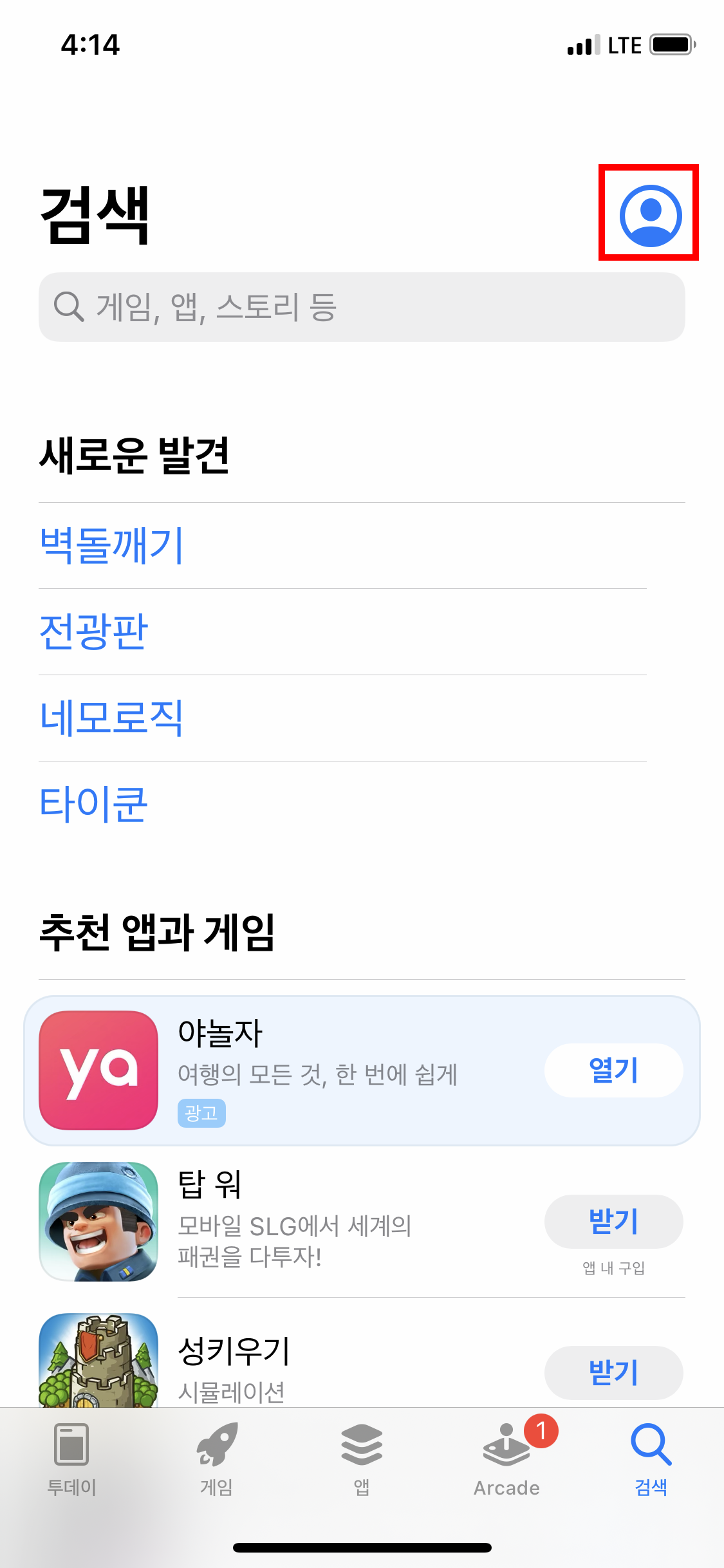 앱스토어 최상단의 동그란 아이콘이 있는데