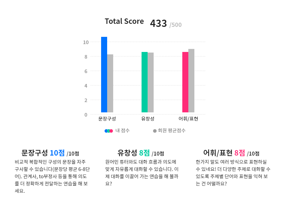 위의 대화내용을 토대로 튜터님께서 나의 레벨을 진단해주시는데