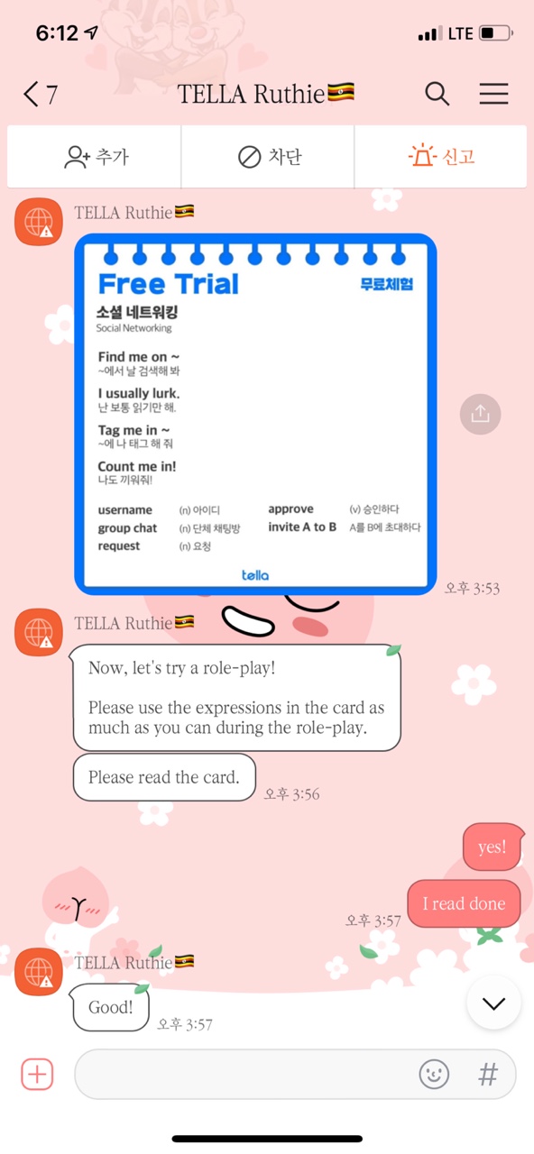 그래서인지 영어를 내뱉는것에 대한 두려움이 상당히 줄게 되고 자신감이 늘게 되는점이 아주 좋다. 이 부분은 텔라에서도 이야기하는 강점이다.