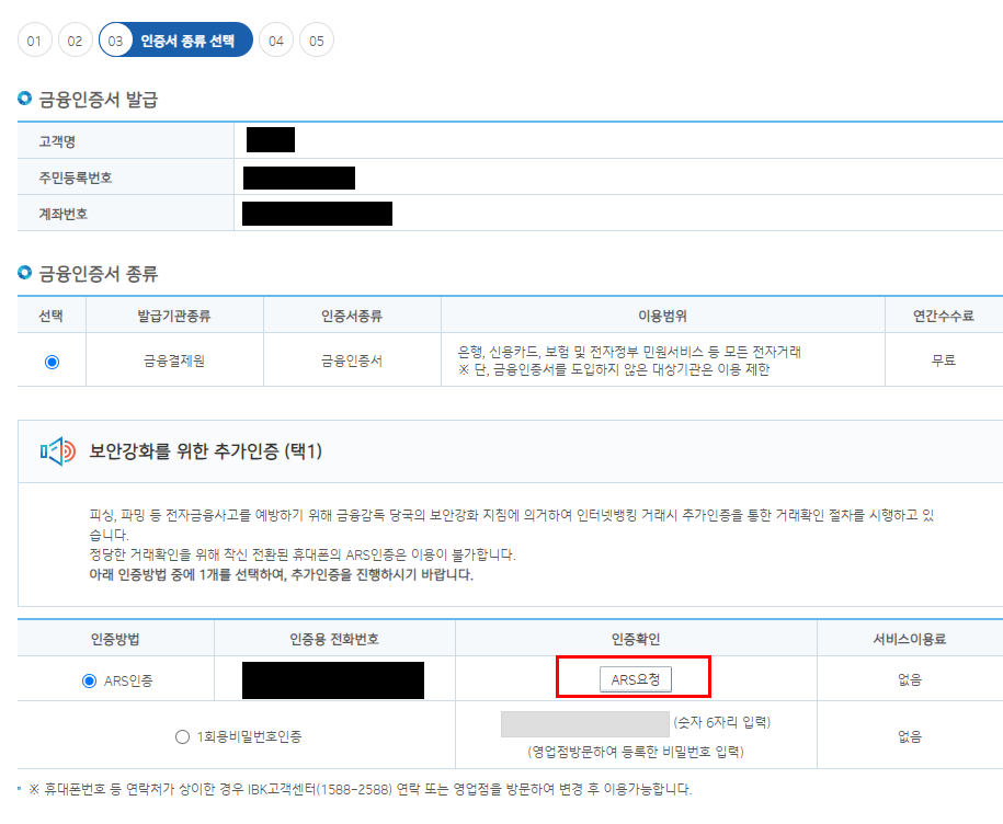금융인증서 발급을 위한 정보 입력하기