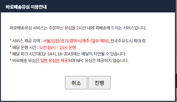 서울지역의 경우 당일 배송되며, 타지역의 경우 택배로 배송된다.