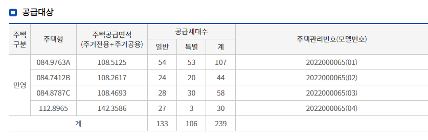 일반/특별공급별 공급 세대수는 위와같이 구성된다.