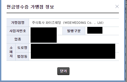 클릭을 해보면 위와같이 해당 가맹점의 주소와 사업자번호/업종을 알 수 있다.