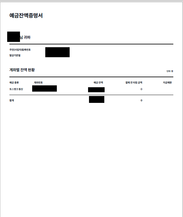 - 토스뱅크에서 예금잔액증명서 발급하기