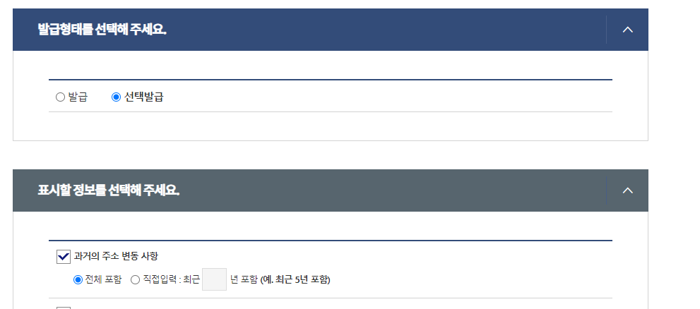 - 과거 주소 이력 나오게 발급