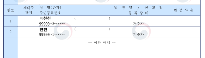 - 주민등록번호는 전부 미노출, 이름은 노출