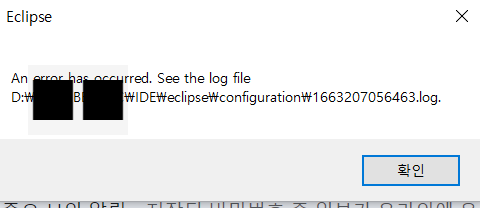 ini 변경 후 이클립스를 구동시키니 위와같은 오류가 발생된다..!