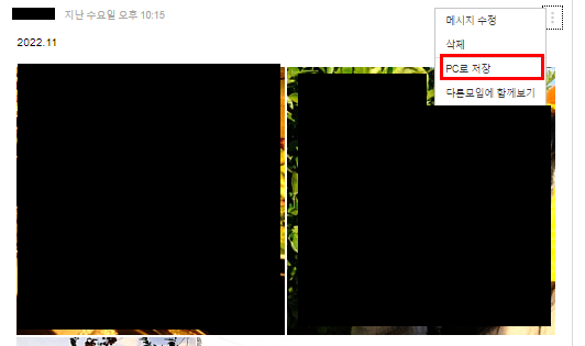 우측에 점 세개 아이콘을 클릭한 뒤, 나오는 팝업메뉴에서 PC로 저장 버튼을 클릭한다.