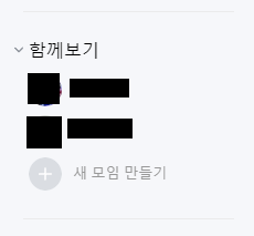 네이버 마이박스로 공유를 하기 위해서는 새 모임을 만들어야한다. 좌측 메뉴에 함께보기 영역이 있다.