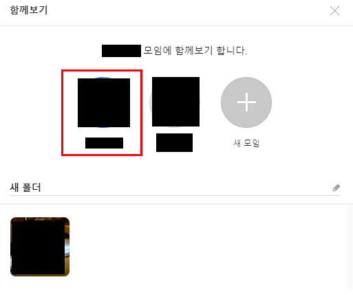 내가 만든 모임을 클릭하면, 모임에 내가 원하는 폴더를 공유할 수 있다.