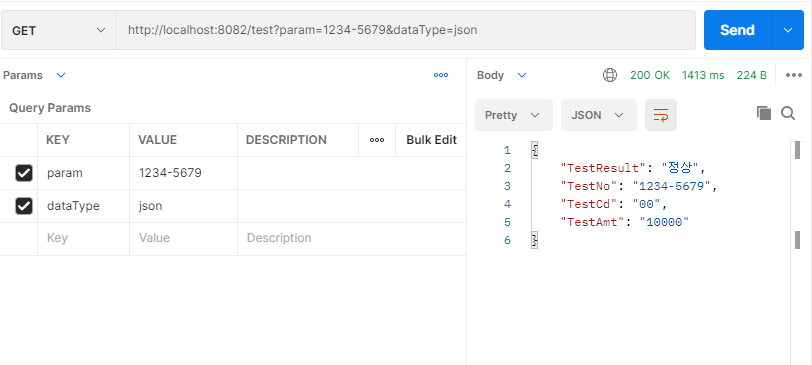 send버튼을 클릭하면 오른쪽의 json형태로 return값을 받을 수 있다.