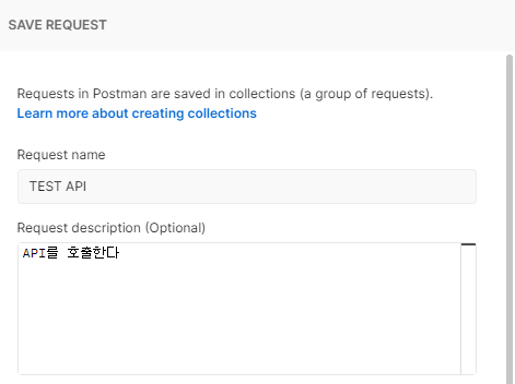 내가 추가할 request name과 request description을 입력한다.