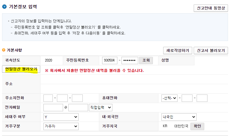 그래야 내가 전년도에 공제 받을 수 있는 항목들을 공제받을 수 있다.