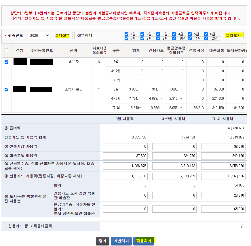 적용하기를 누르면 1년간 사용한 금액을 공제 받을 수 있다.